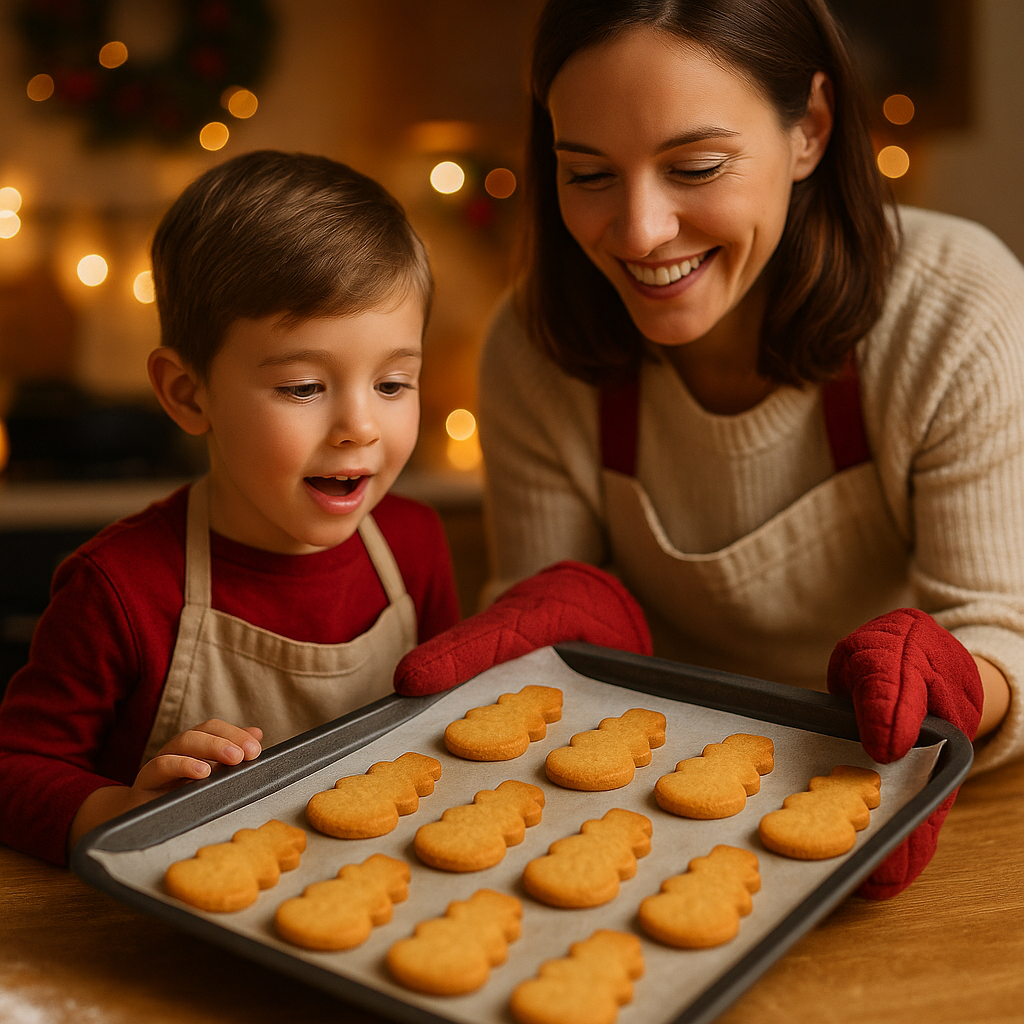 Imaginez vos enfants concentrés, le nez poudré de farine, les petits yeux qui brillent devant les formes de bonshommes alignés sur la plaque… Le bonhomme de neige est une invitation à rire, créer et savourer ensemble. Ajoutez quelques accessoires en pâte à sucre — écharpe, boutons, nez en carotte — et laissez la magie opérer !