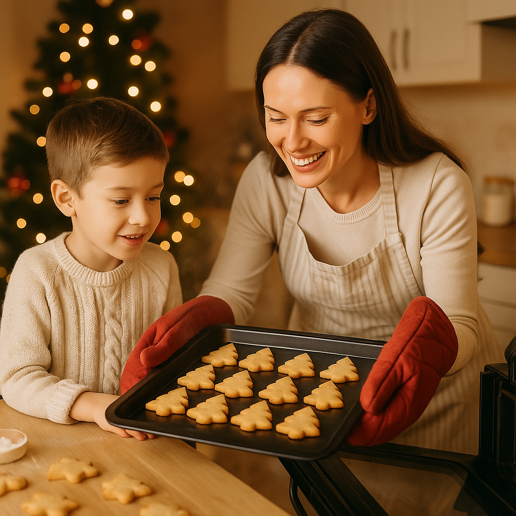 Fermez les yeux et imaginez la scène : la pâte dorée est étalée sur la table, les enfants découpent leurs petits sapins, les premiers biscuits cuisent au four pendant que la maison s’emplit d’un parfum d’épices et de vanille. Les sapins refroidissent sur la grille, prêts à être décorés de glaçage vert, de perles dorées et d’étoiles sucrées. Avec Cuisine-etmoi, ces moments deviennent bien plus que de simples recettes : ce sont des souvenirs d’amour et de complicité à partager.